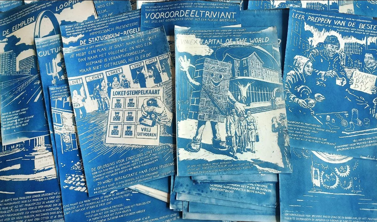 Zondag opent de Ideeënbibliotheek van Amersfoort: een collectie artistieke blauwdrukken die de stad beschouwt als een plek vol denkruimte, verbeeldingskracht en alternatieven. De ideeën zijn vastgelegd als cyanotypieën (blauwdrukken) en vormen samen een verbeeldingsarchief voor de stad, tevoorschijn gebracht door Allard Medema, Frank Koolen, HIMMELSBACH, Naomi Jansen, Neele Schlette, Rufus de Vries en Teun Castelein.